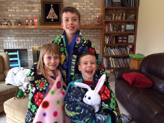 Paul Gaeke sent me this picture of the kids wrapped in the blankets I sent to them for Christmas.